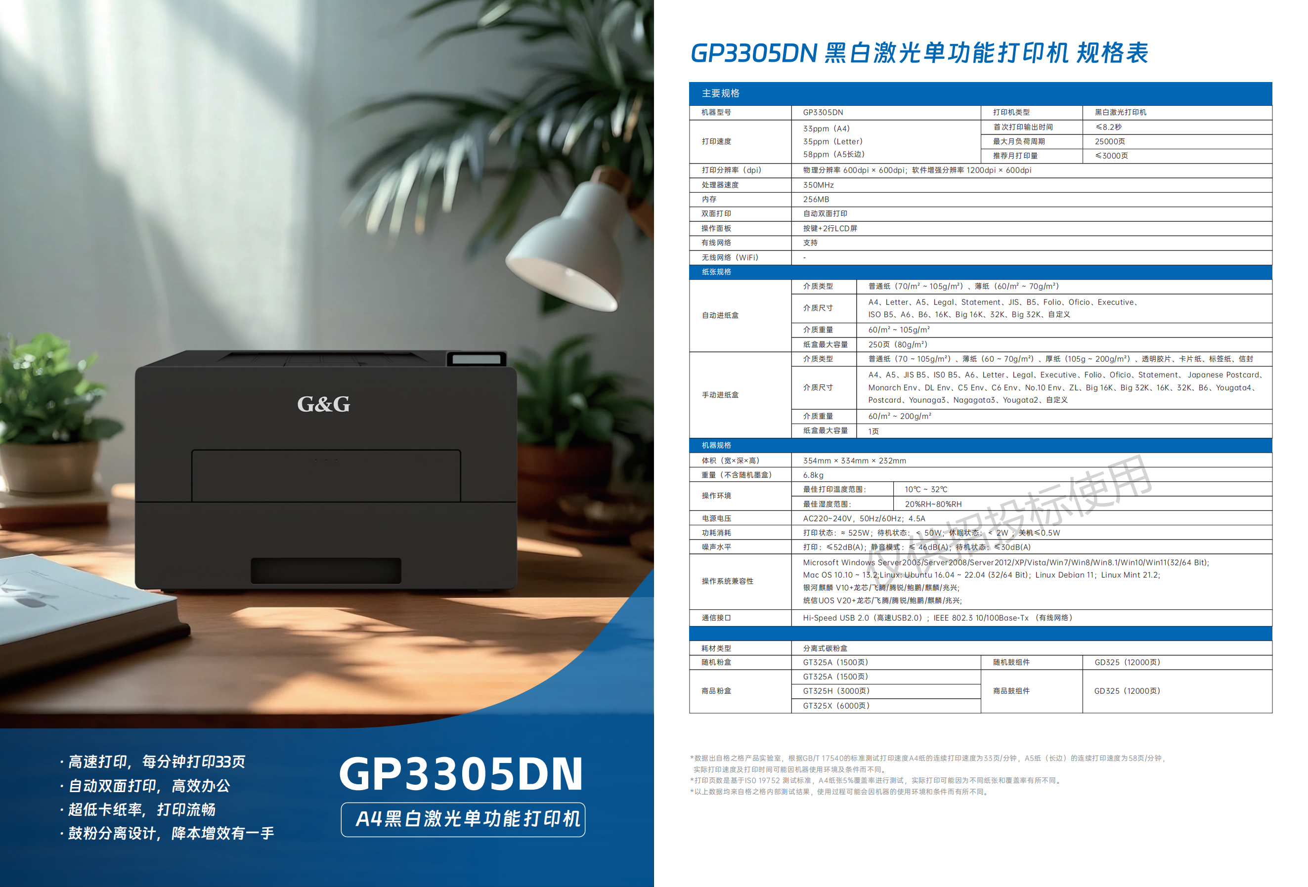 • 商品名称: 格之格GP3305DN A4黑白单功能打印机